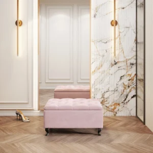 - Ławka pikowana otwierana skrzynia MODIANO BL - Pudrowy róż to wygodna, ręcznie wykonana ławka do przedpokoju lub innych pomieszczeń. Ławka została obita wysokiej jakości materiałem PREMIUM, który jest odporny na przetarcia i uszkodzenia oraz łatwy w czyszczeniu. Nogi siedziska zostały wykonane z metalu, dzięki czemu są solidne i trwałe. Siedzisko jest grube, co znacząco wpływa na komfort siedzenia na ławce.…