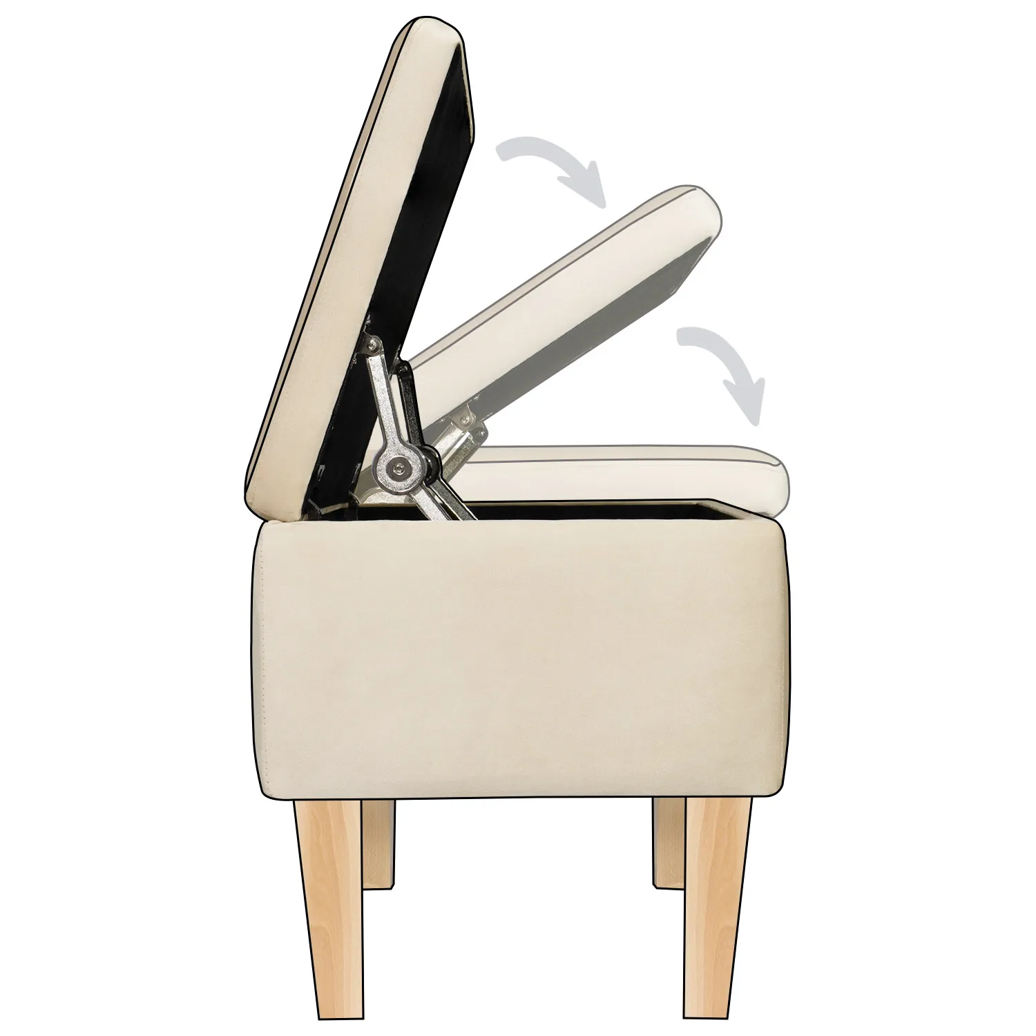 Ławka otwierana skrzynia CARDUCCI NAT – beż to wygodna, ręcznie wykonana ławka do przedpokoju lub innych pomieszczeń. Ławka została obita wysokiej jakości materiałem PREMIUM, który jest odporny na przetarcia i uszkodzenia oraz łatwy w czyszczeniu. Nogi siedziska zostały wykonane z drewna bukowego, dzięki czemu są solidne i trwałe. Siedzisko jest grube, co znacząco wpływa na komfort siedzenia na ławce.