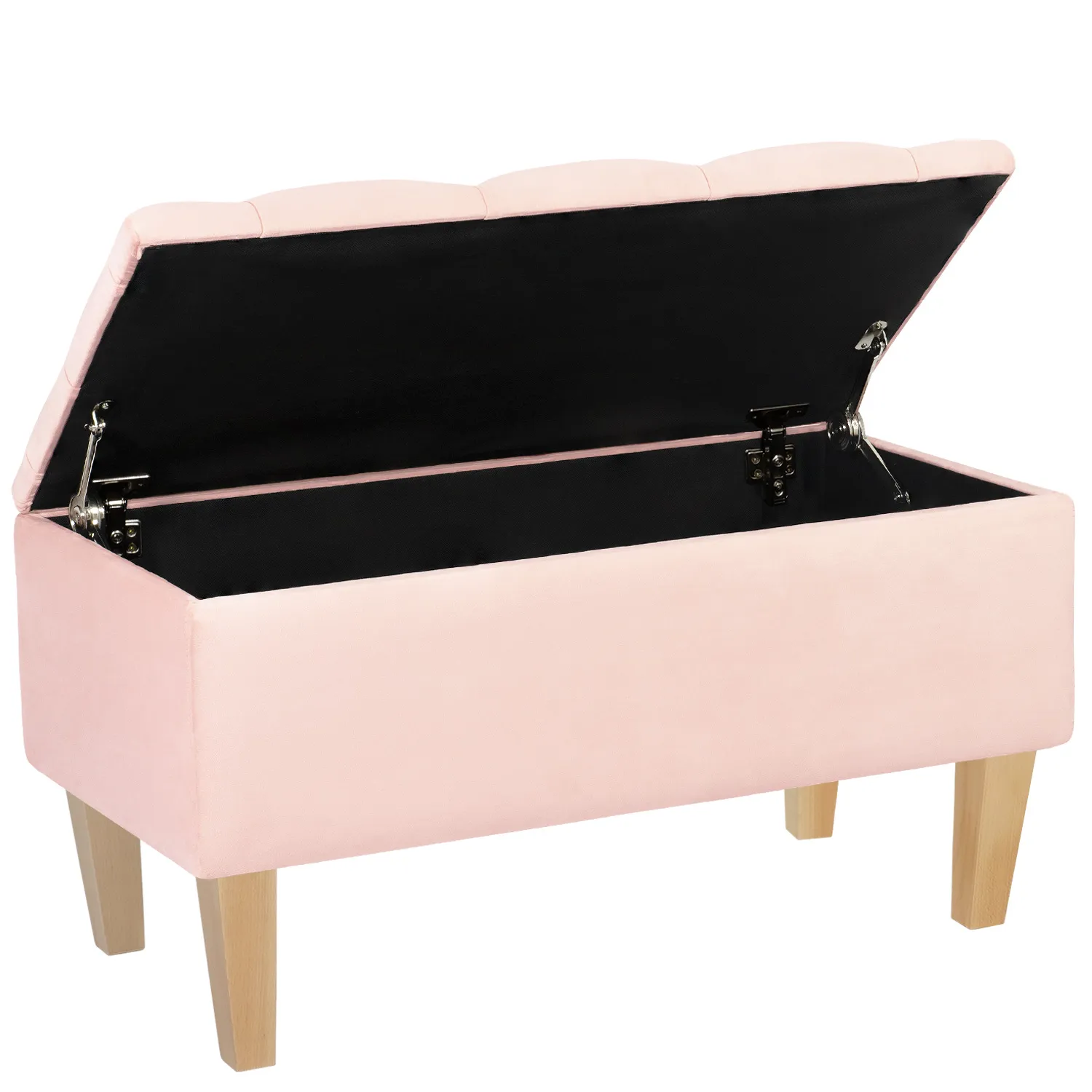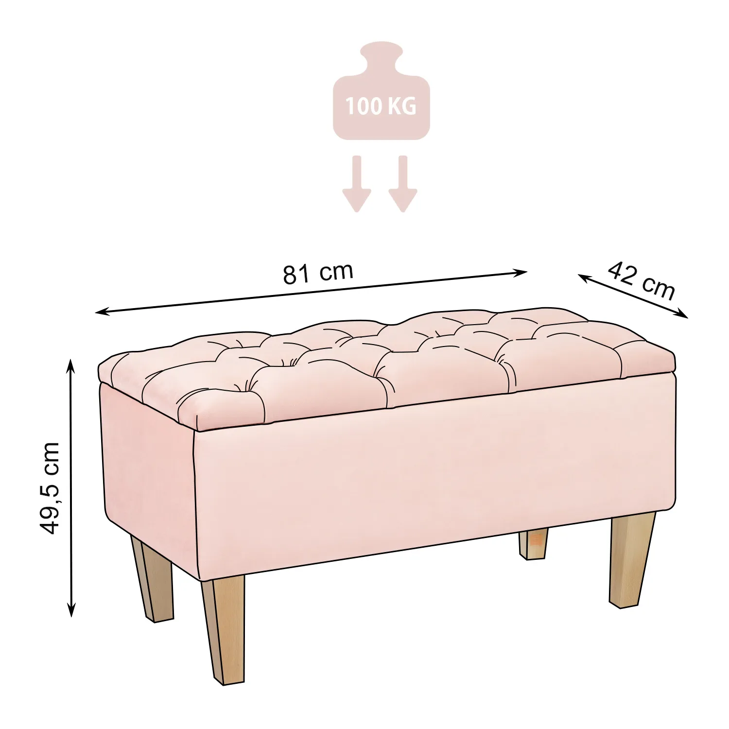 Ławka pikowana otwierana skrzynia BENAVENTE NAT – Pudrowy róż